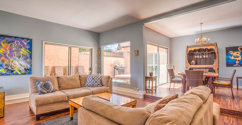 STUNNING 2 Bed Townhome * Right in the Heart of Downtown Vegas * This is a Highly Renovated, Vintage Home * Spacious Layout with Sunken Living Room, Fireplace, High Ceilings All Open with French Doors to TWO Enclosed Patios * Each Bed & Living Space has its Own Patio * Wood Floors & Tile Throughout * Vintage Touches throughout including Built-in Record Player * 1 Car Garage + Huge Storage * Community offers a Sparkling Pool & Tennis!